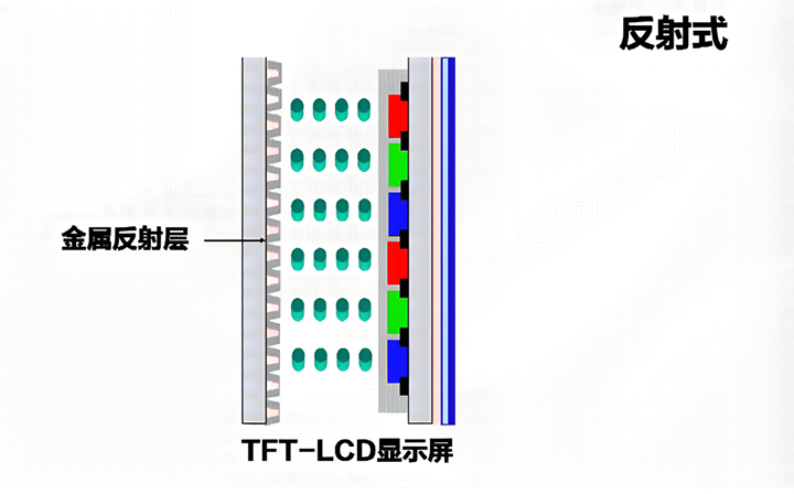 反射式显示屏,又称反射式显示技术,是一种不依赖背光源,而通过反射环境光来成像的显示方式。其基本结构是在液晶层下方加入一层金属反射层,环境光穿过液晶层后被反射回来,再经过液晶调制形成图像。