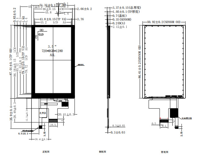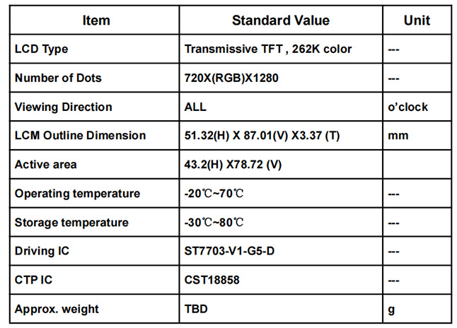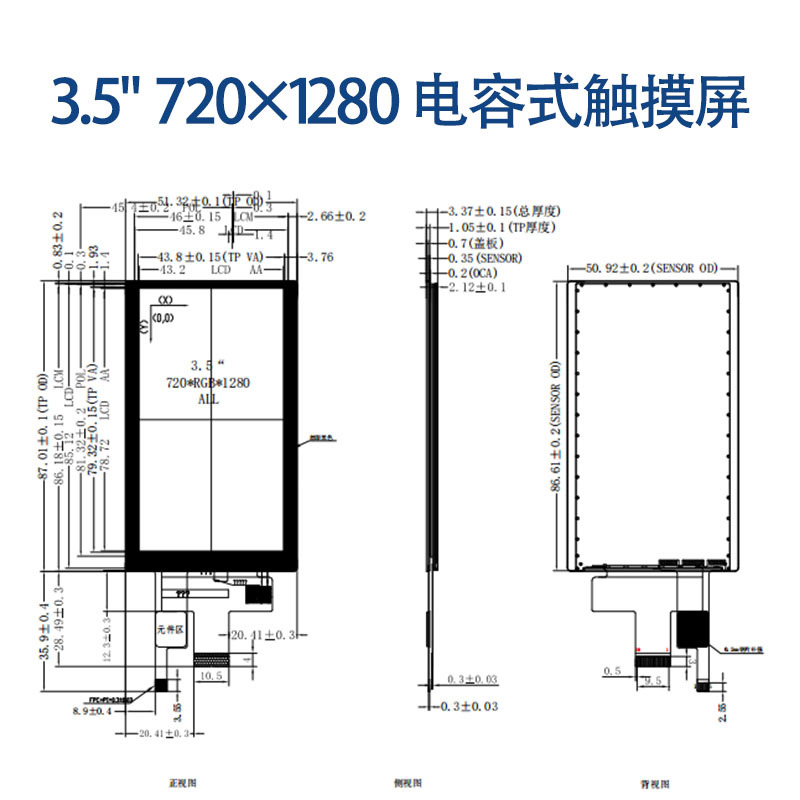 外形尺寸:51.32(H) X 87.01(V) X3.37 (T)mm