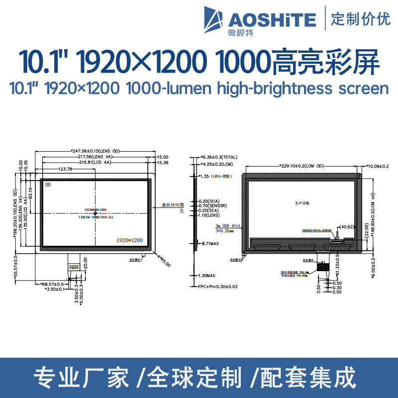 LCM+CTP:247.56(W) ×166.20(H) ×6.36(T)mm