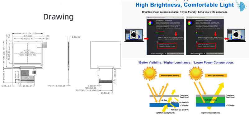 定制LCD解决方案,适用于不同的应用,亮度从0-3000,达到完美的显示效果。