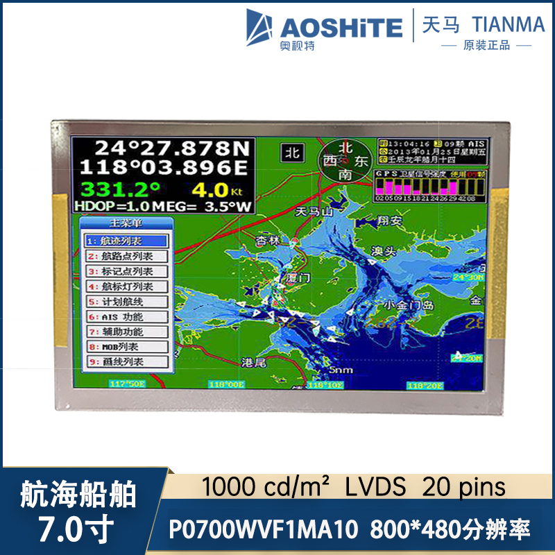 天马推出的P0700WVF1MA10是一款采用 TFT-LCD技术的7.0英寸液晶模组产品,它装配有WLED背光,含LED驱动器背光驱动,无触摸。特征为: 宽温,超高亮度,白光LED背光,寿命大于7万小时,含LED驱动器,180度翻转显示,6/8位灰阶可选,表面雾面。它的工作温度为 -30 ~ 80°C,存储温度为 -40 ~ 90°C,耐振动性为1.0G (9.8 m/s²)。此型号适合应用于工业,户外高亮。