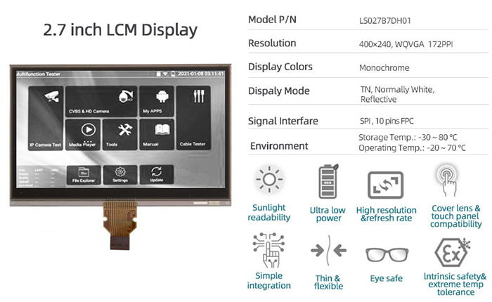 LS027B7DH01 特征:反射式表面雾面,应用产品手持终端。