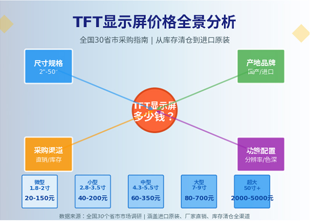 TFT显示屏多少钱?北京上海深圳等30省市2寸-9寸价格对比及进口国产报价指南