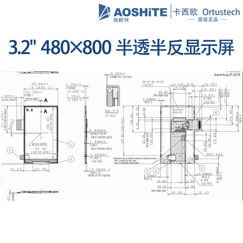 面板尺寸:3.2英寸面板,类型a-Si TFT-LCD, 液晶模组