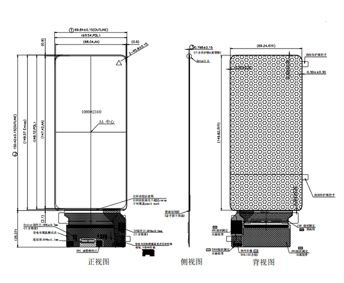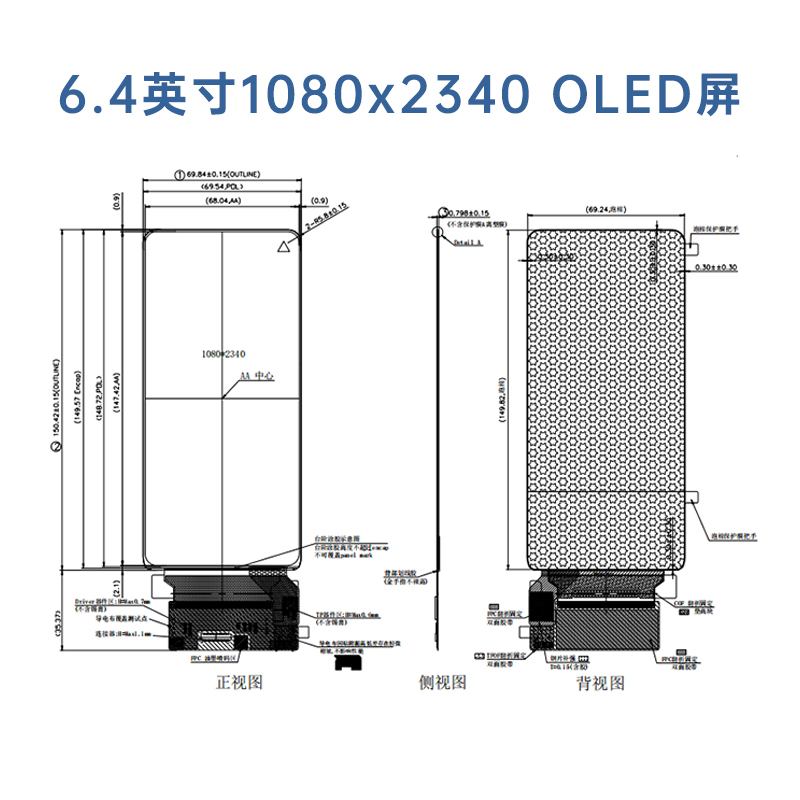 > 6.4寸oled屏1080*2340高清MIPI接口550亮度电容触摸屏幕总成