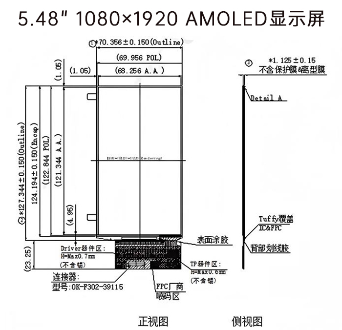 > 5.48寸amoled显示屏1080*1920高清彩屏模组MIPI 39pin 420亮度电容触摸屏