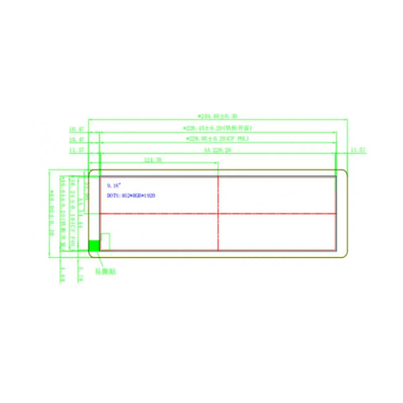 ET092BA01-GL (462x1920 , MIPI, IPS, 400nits, -20~60°C,66x249.4mm)