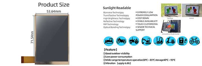 COM35H3P08ULC 特征:肖像模式、半透射半反射式、白光LED背光、寿命大于5万小时,面板用于手持终端