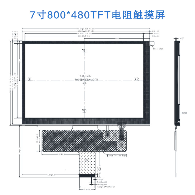 7寸tft电阻触摸屏800×480分辨率1100cd/m² -30~85℃宽温高亮工控屏幕
