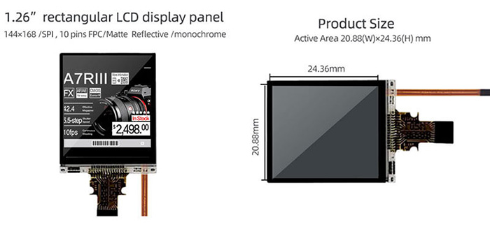 LS013B7DH05 适用于可穿戴设备及工业液晶显示屏。