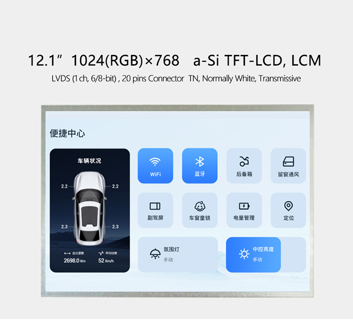 面板尺寸:12.1英寸面板类型a-Si TFT-LCD, 液晶模组