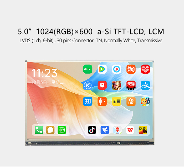 面板类型:a-Si TFT-LCD, 液晶模组